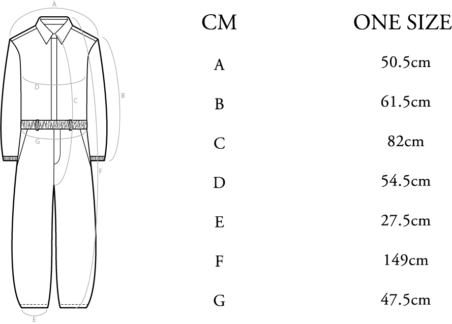 Jumpsuit with floating visor hood. The brim of the hood continues into the front button-up placket. Pleats complement the drapey yet fitted silhouette. Detailed with inseam pockets on the body and pants, and adjustable waist tabs. Refined with curved inner corners on the sleeve cuffs. Accents of Japanese printed cotton on the collar stand, underside of sleeve cuffs, and hood lining. Complete with asymmetric back pockets. Button fly.